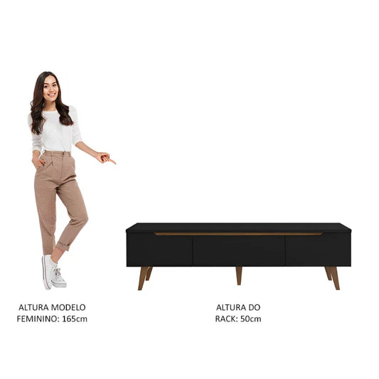 Origem: Brasil Altura: 50 cm Largura: 180 cm Profundidade: 40 cm Suporte: TVs de até 75 polegadas Acabamento: Pintura Poliéster de alta resistência com 7 camadas de proteção, resistente a álcool, água, e calor Pintura ecológica: Isenta de vapores nocivos Duas portas laterais Gaveta central com corrediças metálicas Espaços para...
