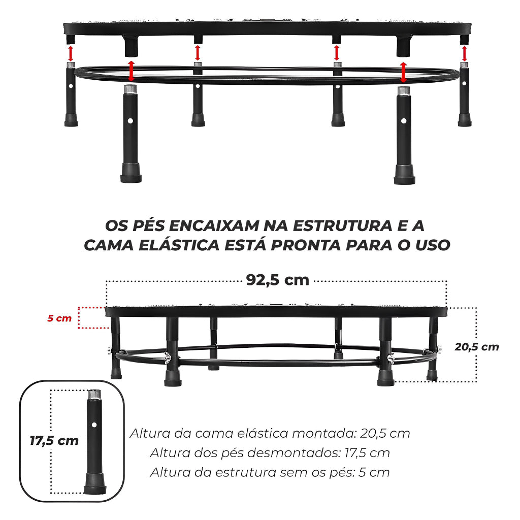 1x Estrutura com 32 molas e lona reforçada.